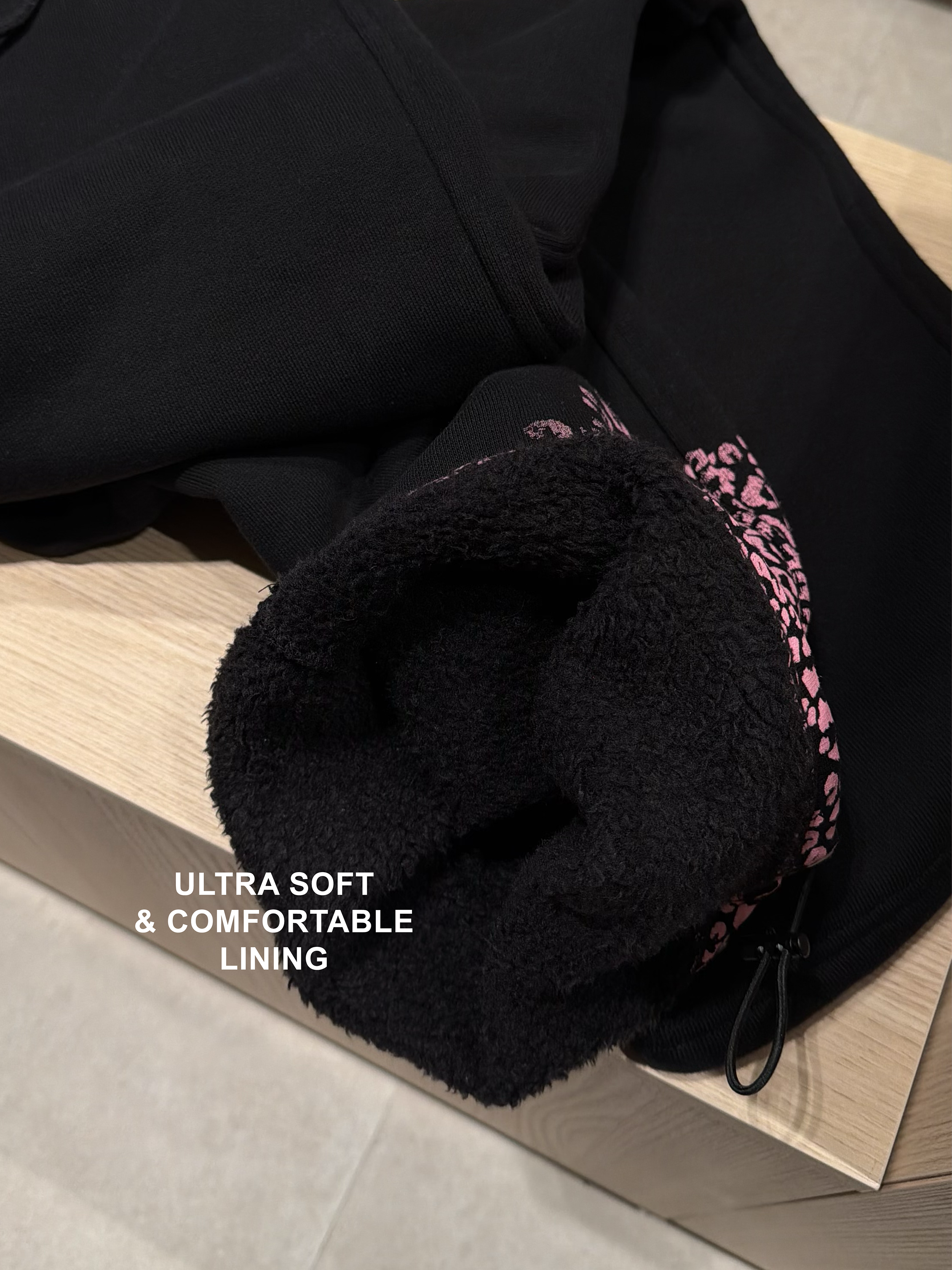 SOLD OUT - Pink Cheetah Black Plush Sweatpants